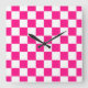 Chequered squares hot pink white geometric retro square wall clock