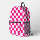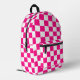 Chequered squares hot pink white geometry Printed Backpack. Cool fashion accessory bag for her. Cool retro chequered geometric square pattern. Vintage tile white and hot pink modern chequered. Create a unique and personalised backpack with a custom touch!