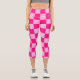 Chequered squares light hot pink geometric retro Capri Leggings. Fashionable fun Clothing gift for her. Cool retro chequered geometric square pattern. Vintage tile hot pink modern chequered.