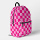 Chequered squares light hot pink geometric retro Printed Backpack. Cool fashion accessory bag for her. Cool retro chequered geometric square pattern. Vintage tile hot pink modern chequered. Create a unique and personalised backpack with a custom touch!