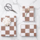 Chequered squares mocha brown white geometric retr wrapping paper sheet
