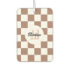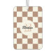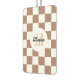 Chequered squares mocha brown white retro Monogram Car air freshener. Chequered squares geometric retro pattern Interior Car Accessories - gift for all. Cool retro chequered geometric square pattern. Personalise with your custom initial and name.