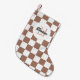 Chequered squares mocha brown white retro Monogram Small Christmas Stocking