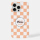 Chequered squares peach white retro Monogram iPhone Case. Personalise with your custom initial and name.