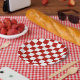 Chequered squares dark red and white geometric retro pattern Party Supplies. Cool retro chequered geometric square pattern. Vintage tile white and red modern chequered.