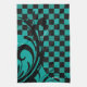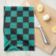 Chequered Swirly Pattern | Teal Blue, Black Tea Towel