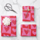 Chequered Warped Pink and Red Hearts Pattern Wrapping Paper Sheet
