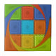 The central portion features a grid or chequerboard pattern composed of squares in red, golden yellow, green, and cyan.