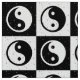 Chequered black and white positive and negative Zen yin yang symbols themed Surface Pattern Design Fabrics