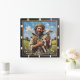 This artistic wall clock brings to life the poignant moment of a happy shepherd gently holding his recovered lamb in a vibrant, blooming meadow. The impactful words, "Rejoice with me, I have found my lost sheep. Luke 15:6," are clearly legible within the image, it's a touching daily reminder of care, persistence, and the profound happiness in recovery and belonging.