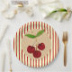 This Cherries and Stripes Paper Plate features an acrylic painting print of Cherries with a matching stripe pattern border.