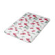 This rug is just as pictured! Vibrant Red and very soft material, nice to step in out of the tub! Matches my set of accessories and shower curtain! A must have to add some whimsy to your bathroom! Very nice, vibrant and clear print! Beautiful!