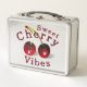 This cherry theme lunch box provides a hint of whimsy and vintage charm. This unique artwork has various tones of scarlet, blush, violet, and chartreuse. This lunch box will add a playful burst of colour to your school gear. I created this pattern from an image in my original acrylic painting.
