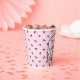 A charming cherry design to celebrate your little one's first birthday. This cherry theme paper cup provides a hint of whimsy and vintage charm. This unique artwork has various tones of scarlet, blush, violet, and chartreuse. Change the background colour, graphic and text to fully personalise and customise.