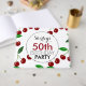 Cute classic Cherry and Leaf. Design on hard cover guest book with texts into a white circle for 50th Birthday party to customise. You can personalise it by rescaling pattern, change the background colour and text at your convenience. Designed by René Bui.