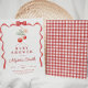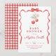 Cherry themed baby shower invitation that is oh so sweet for a baby girl. Fun and modern featuring water coloured cherries and gingham.