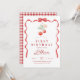 Cherry themed birthday invitation that is oh so sweet. Fun and modern featuring water coloured cherries and gingham.