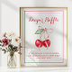 Add a sweet touch to your baby shower with this cherry diaper raffle sign. Featuring watercolor red cherries tied with a pink bow, this sign is a perfect way to encourage guests to bring diapers and join in the raffle fun. A charming detail that matches cherry-themed baby showers, summer parties, or sweet celebrations.