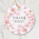 Floral baby shower favour tag featuring pink watercolor cherry blossom branches set on a white background.