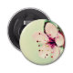 Close up view of the delicate cherry blossom flower. A pastel-pink flower with soft round petals. Background is a pale lime green.