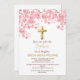 Cherry Blossom Floral Elegant Cross Girl Baptism Invitation