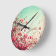 Cherry Blossom Flowers Floral Red Blue Vintage Antique Wall Clock