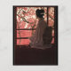 Vintage Japanese art featuring a Geisha qazing through a window at Cherry Blossoms,