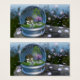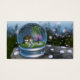 Inside a "snow globe" is a spring landscape with a cottage overshadowed by maple and cherry trees. The surrounding grassy field is filled with spring flowers, snapdragons and cornflowers in pastel colours. Roses and ivy climb the wall of the little house. The cherry tree is in full bloom, and instead of snow there are cherry blossoms swirling around in the globe and blanketing the grass.