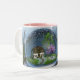 Inside a "snow globe" is a spring landscape with a cottage overshadowed by maple and cherry trees. The surrounding grassy field is filled with spring flowers, snapdragons and cornflowers in pastel colours. Roses and ivy climb the wall of the little house. The cherry tree is in full bloom, and instead of snow there are cherry blossoms swirling around in the globe and blanketing the grass.