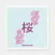 This Japanese-themed design has two branches of pink cherry blossom flowers surrounding the Japanese kanji text for the word cherry blossom. A spring in Japan. floral design.