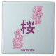 This Japanese-themed design has two branches of pink cherry blossom flowers surrounding the Japanese kanji text for the word cherry blossom. A spring in Japan. floral design.