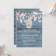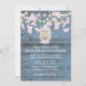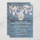 Cherry Blossom Flowers & Vintage Lantern Dusty Blue Barn Wood Wedding Invitations.