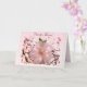 This Mother's Day card features a single exquisite pale pink cherry blossom bathed in a rosy glowing light, surrounded by distant blossoms. Another flower is inside on a pastel pink gradient. All text can be customised to suit your needs.