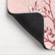 Dainty white and pink cherry blossom flowers and buds on a distressed pink background with lightly engraved rose pattern.