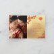 This Chinese wedding thank you card features a re happiness symbol, red cherry blossoms and a thank you text in traditional Chinese ( 謝 謝 ) on a gold background. A custom photo and a custom thank you text are at the inner sides of the card. Matching wedding suit available.