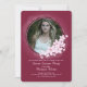 A beautiful, hand-drawn cluster of pink cherry blossoms graces the round photo window of this modern invitation. Suitable for any age and most celebrations. (FP)