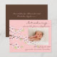 Cherry Blossom Pink & Brown Baby Girl Photo Birth Announcement