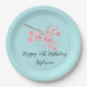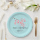 Cherry blossom Sakura Pink Turquoise Birthday Paper Plate