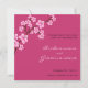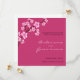 Elegant Save the Date cards with beautiful pink cherry blossoms on a modern square fuchsia invitation.