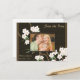 Add your own photo to our custom save the date postcards with elegant white cherry blossoms on a brown background. Easy to use template - just add your photo, and enter the names of the Bride & Groom, along with the wedding date in the space provided.