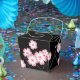 This favour box looks like a chinese food takeout box and has a cherry blossom pattern.