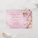 Cherry blossom wedding invitations with customisable text, when couple host with their families, printed on pink background