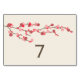 A wedding table number place card featuring a watercolor inspired illustration of cherry blossoms.