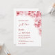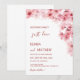 Beautiful pink watercolor cherry blossoms on a white background with bride and groom fist names only. "Nothing fancy, just love" casual wedding quote.