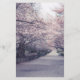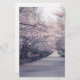 This fine art landscape photo features a romantic springtime path in Central Park, New York City. The path is lined with cherry trees which are light pink and white at peak spring blossom. The trees create a gorgeous canopy over the path and a tiny house that looks like something out of a storybook or fairy tale sits at the end of the path.