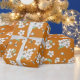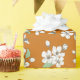 Elegant white cherry blossoms with honey bees flying between the flowers over a golden amber background to wrap baby shower gifts for the mother-to-be, or any greenery theme outdoor event.