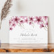 Chic floral baby shower invitation features a top border of blush pink watercolor cherry blossoms. Personalise with your baby shower details in modern hand lettered script and traditional sans serif lettering. Invitations reverse to subtle pale grey and white stripes.