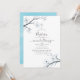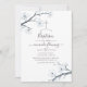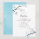 White cherry blossom floral watercolor baptism invitation with sky blue watercolor reverse designed to be quickly and easily customised to your event specifics.