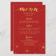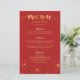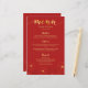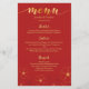Wedding dinner menu card in red and gold cherry blossoms design.