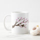 Beautiful vector illustration of a bird perched on a cherry blossoms or sakura tree comes in two stylish colours: pink and aqua. It can be personalised with your name, monogram, initials or any text of your choice for a complete custom look!